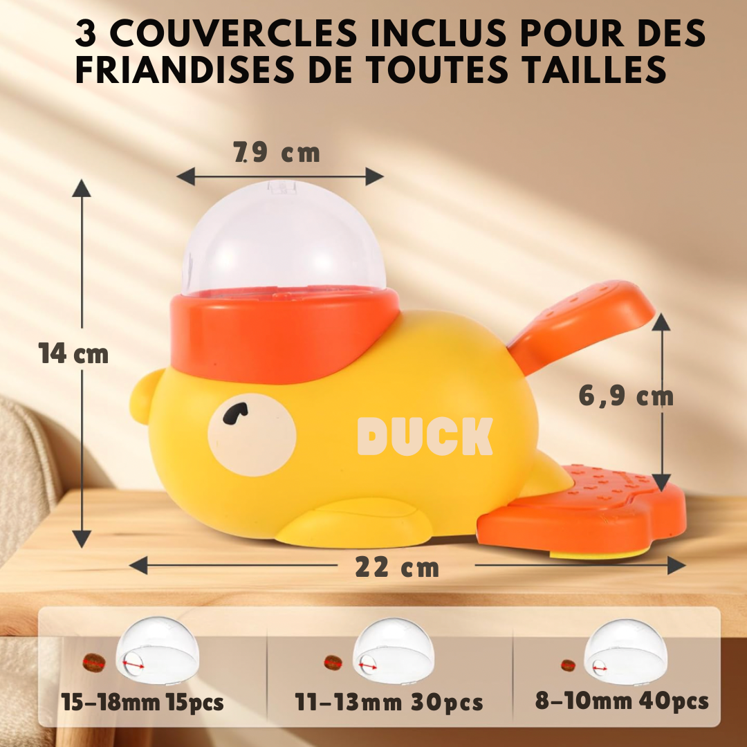 Le SmartDuck transforme cette énergie négative en moments de jeu stimulants. En occupant son esprit et en le récompensant par des friandises, il canalise son attention, apaise son stress et réduit naturellement les comportements destructeurs.